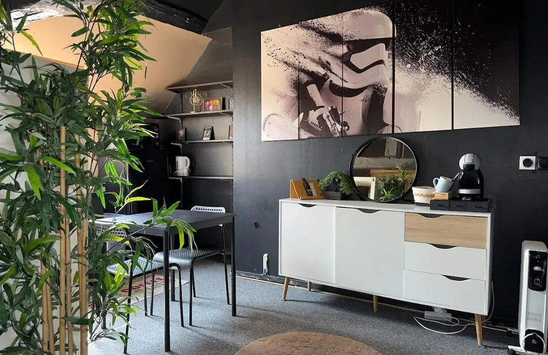 The 38 m² Studio Star Wars Conde-Sainte-Libiaire offers proximity to such tourist attractions as Eglise Sainte-Libiaire, situated about 5 minutes' walk away. This apartment offers access to a spa salon, ensuring maximum relaxation.